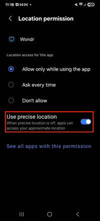 NOTE: Enabling Precise Location makes sure that the GPS position data is as accurate as possible, not having this enabled makes the GPS guess within a ~3²km area.