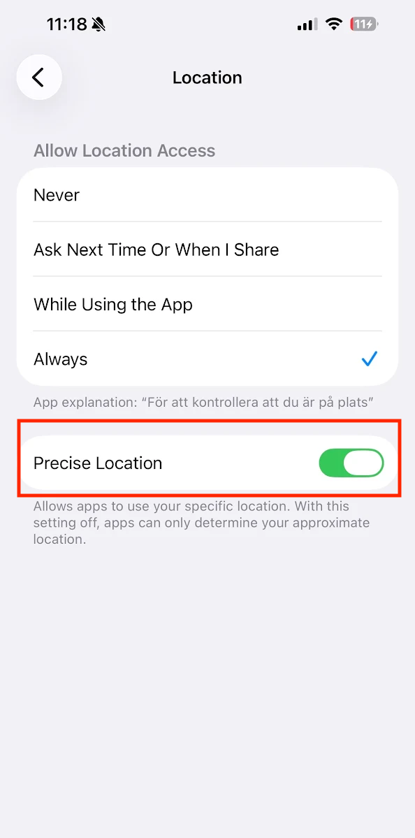 A1: GPS-paikannus saattaa olla pois päältä heidän puhelimessaan, varmista että se on päällä. Varmista myös, että Tarkka sijainti on käytössä.
